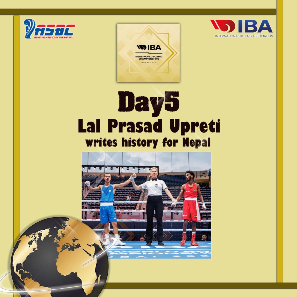 Lal Prasad Upreti writes history for Nepal on the fifth competition day at the IBA Men’s Elite World Boxing Championships in Dubai.