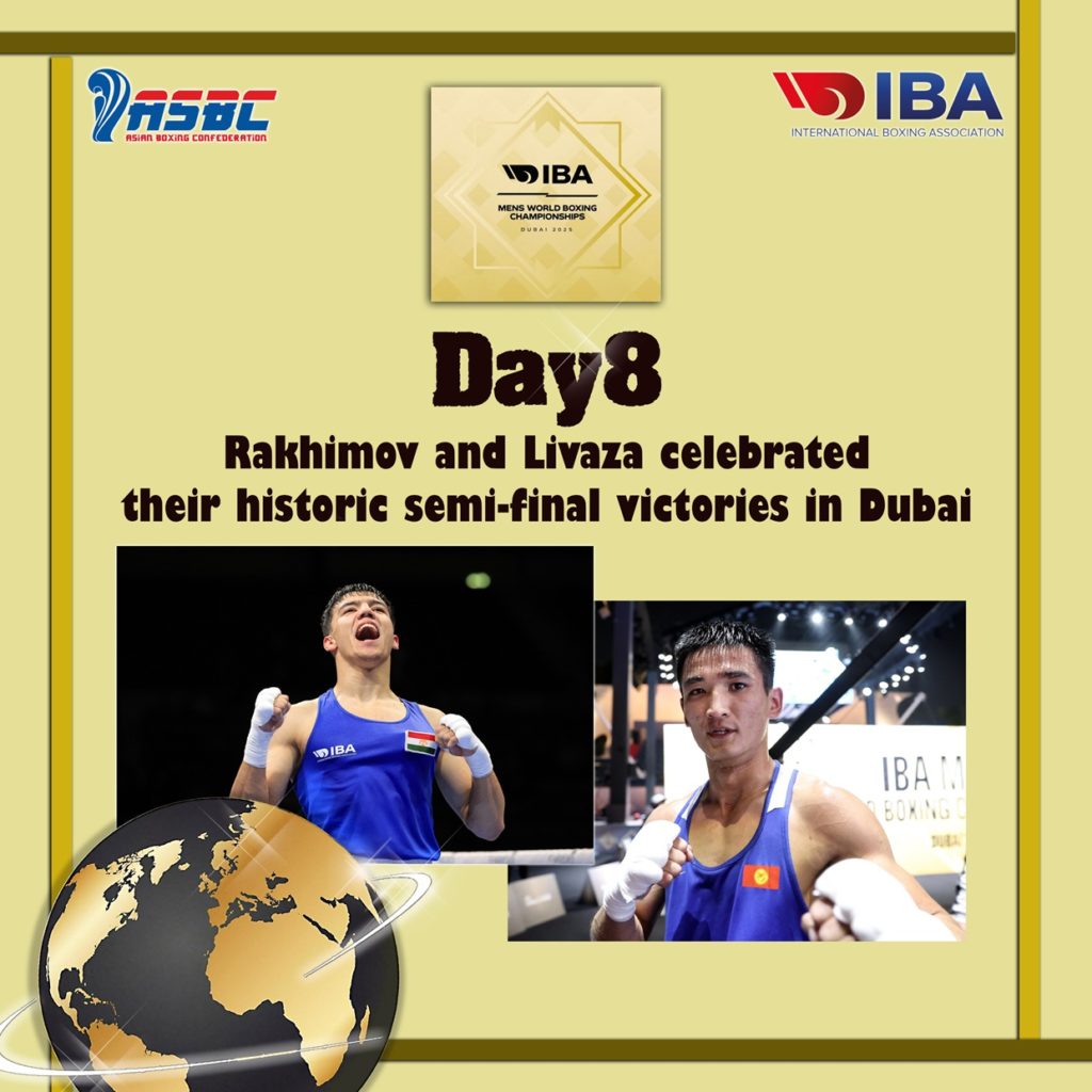 Omar Livaza of Kyrgyzstan and Khusravkhon Rakhimov of Tajikistan made their next historic steps for their nations on the eighth competition day at the IBA Men’s Elite World Boxing Championships in Dubai.