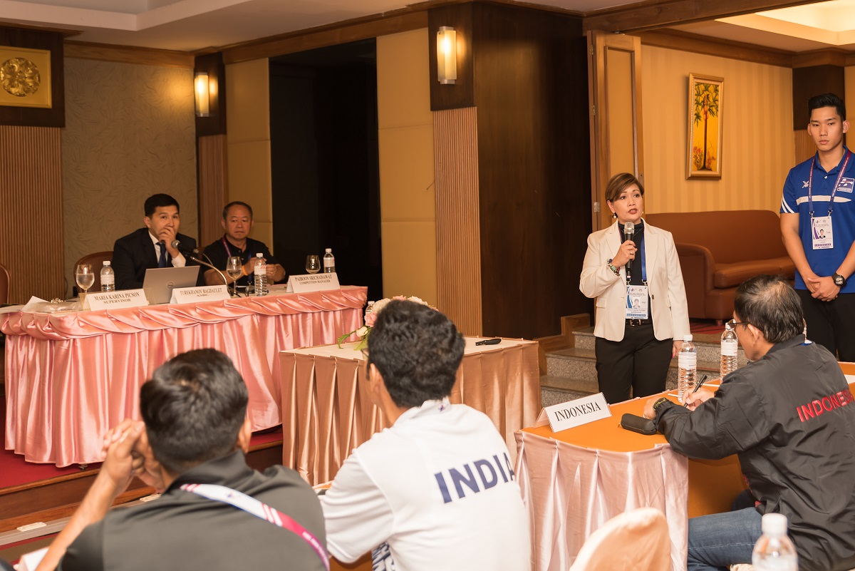 Mrs. Karina Picson is the Supervisor of the ASBC Asian Confederation Youth Boxing Championships who led the Technical Meeting and informed all delegations about the schedule of the competition, the new rules, the equipments, the requirements during the competition and other important issues as well.