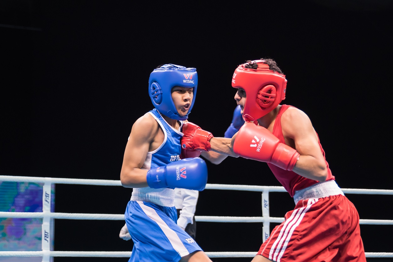 Shokhmukhammad Azizov has been training in Russia but fighting for Tajikistan in the international competitions. Azizov won a tough youth international event this year in Russia and tried to work from longer distance in the first round. The Haryana-based Indian talent moved ahead more and he looked confident in the opening minutes. Tajikistan’s lone boxer in the event stepped into the gas in the second and launched a few successful body and head shots. In the battle of the southpaws the Indian boxer was able to control the second part of the bout and advanced to the quarter-finals in Bangkok.